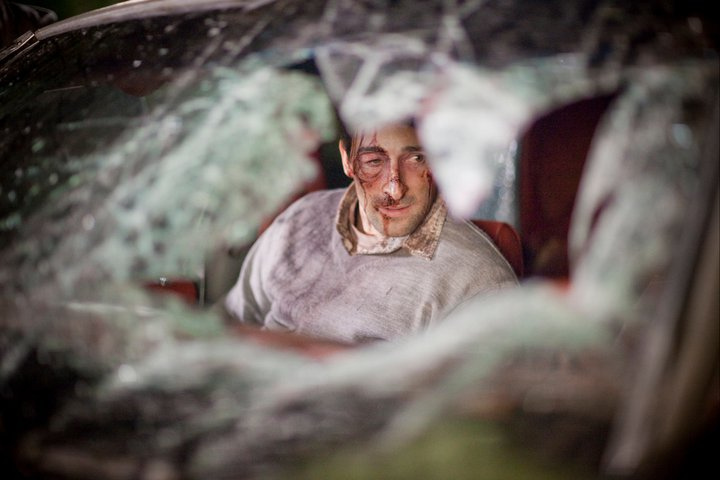 Özeti; Bir adam gözlerini ormanın içinde kaza yapmış olan bir arabanın ön koltuğunda açar. Adam buraya sıkışmıştır ve arka koltukta bir kişinin cesedi vardır. Aynı zamanda arabanın dışında ormanın içinde de bir ceset vardır ve bulunduğu yerden çıkamamaktadır. Ayakları sıkışmıştır ve yardıma ihtiyacı vardır. Ancak bulunduğu yerden ayrılamayacak ve çaresizce arabanın içinde beklemeye başlayacaktır.