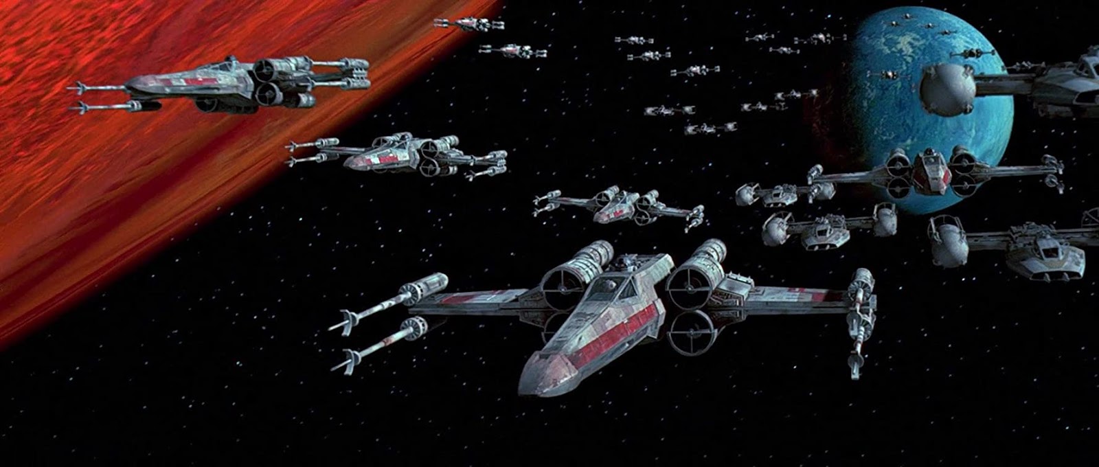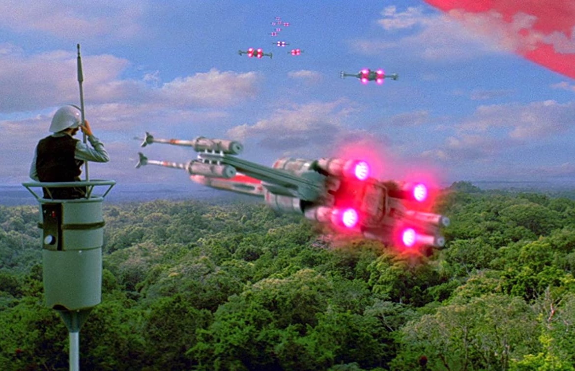 Bunun üzerine isyancı bütün pilotlar gemilerine binecek ve bu sırada Ölüm Yıldızı silahı da Yavin-4 uydusunu yok etmek için gereken mesafeyi oluşturmaya çalışacaktır. İsyancı gemiler havalanıp istasyona saldırmaya başlayacaklar ve bir gemi içinde bulunan Luke'un içsel sesi ile Obi Van, konuşmaya başlayacaktır. Bu saldırı sırasında bir çok gemi saldırıda yok edilecek ve Darth Vader'da bir gemiye binerek isyancılara saldırmaya başlayacaktır. İsyancılardan biri zayıf noktayı bulmuş, ateş etmiş ama başarılı olamamıştır.