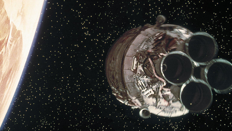 Bu sırada Han Solo'nun gemisinde Obi Van tarafından Luke, jedi eğitimleri almaya başlayacak ve aynı zamanda Obi Van, Alderaan'ın yok edildiğini hissedecektir. Alderaan'a geldiklerinde parçalarının arasında kalacaklar ve kısa bir süre sonra yakınlarındaki Ölüm Yıldızı silahı uzay istasyonunun çekim alanına girecekler ve istasyonun içine girmek zorunda kalacaklardır. İçeride onları bekleyen imparatorluk askerlerinden geminin içindeki özel bölmelere girerek saklanacaklar ve sonrasında bir kaç askeri öldürüp, onların kıyafetleri ile istasyonun bilgisayar sistemlerini komuta eden odaya gireceklerdir.
